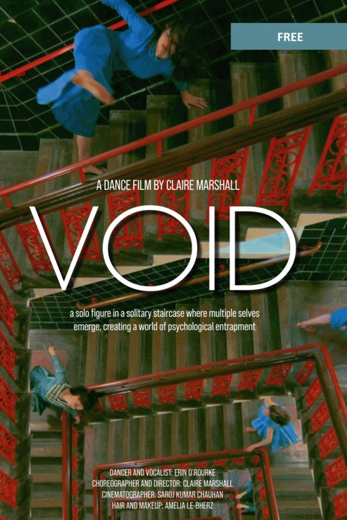 ENTRAPMENT | MULTIPLES | SPIRALS Winding upwards, gazing downwards, a solitary figure, dancer Erin O’Rourke journeys through an old labyrinthine staircase as a metaphor of her psyche. Moments of déjà vu and multiple selves emerge, achieved through editing, extending the dancer’s corporeal limitations as a tone of psychological entrapment emerged in a spiral structure. The initial creative development of Void was supported by a stART Grant from Metro Arts in 2020. Void was incorporated into Claire Marshall's folio of works for her Master of Fine Arts (Dance) at the Victorian College of the Arts, University of Melbourne (2019-2021). Void has been selected for over 35 film festivals including DanceLens at Dancehouse, Melbourne, TDP'21 International Dance Festival, Ireland, Festival de Cine-Arte en la Frontera, Venezuela, In Shadow Screendance Festival, Lisbon, Thessaloniki Cinedance International, Greece, Vesuvius International Film Festival, Italy, Dark Veins Horror Festival – Lecce, San Francisco Indie Short Festival, Braga International Video Dance Festival, Portugal (Winner), Lighthouse Film Festival, Chicago, and Texas Arthouse Festival. “Claire Marshall's Void is another favourite, a lyrical experience of labyrinthic entrapment, a cinematic dance reconstruction that lies somewhere between Lynch and Hitchcock”. – TRE.IE Culture (Ireland) review for Tipperary Dance International Festival, 2021 Presented by Claire Marshall Trigger Warnings: Staircase Phobias Cast: Erin O’Rourke Vocalist: Erin O’Rourke Cinematographer: Saroj Kumar Chauhan Choreographer, Director, Editor, Costumier: Claire Marshall Hair and Makeup: Amelia Le-Bherz